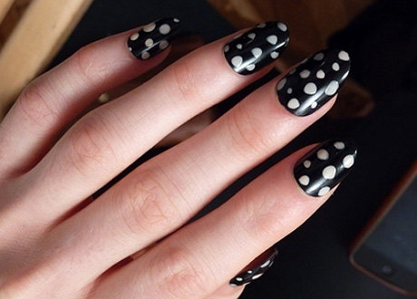 Модный дизайн ногтей 2012 должен быть в точечку. Главное, чтобы он был исполнен в трендовом черном и белом цвете.