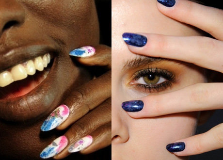 Эта весна и лето будут сезоном искрящегося, сногсшибательного маникюра. Возьмите на вооружение прием модного дизайна ногтей 2012, позволяющий достичь мраморного эффекта. Процесс создания не требует серьёзных затрат и усилий, а результат, в итоге, будет просто ошеломляющий.
