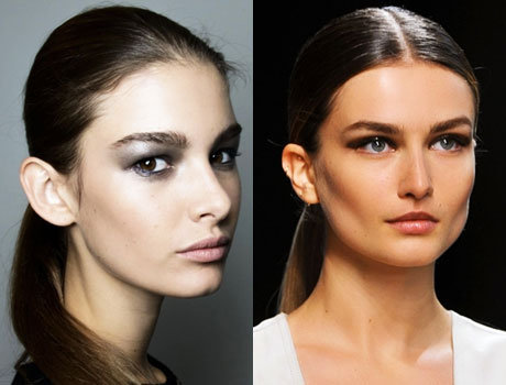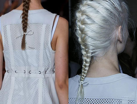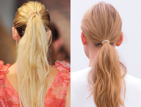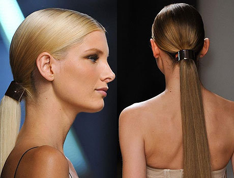 Наряду с низкими хвостами бал правят высокие объемные хвосты. Стилисты показов Недели моды Mercedes-Benz, кажется, поют оды наращиванию, не скрывая, что прически они создавали, используя искусственные пряди. Волосы моделей были собраны в длинные гладкие хвосты на затылке. Объема прическе придавала прядь, обернутая вокруг резинки.