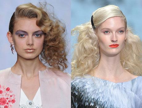 Гламурным стилисты называют глубокий боковой пробор, который украшает волнистые волосы. Он отлично сочетается как с мягкими волнами, так и с естественными завитками. Примеры продемонстрировали стилисты показов Veronica Lake и Валентин Юдашкин.