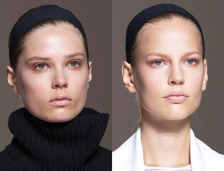 В отличие от остальных дизайнеров, у Victoria Beckham все строго – гладкий низкий хвост и серая повязка на голове. Этот акцент сделал из девушек денди, и в то же время они не потеряли женской привлекательности.