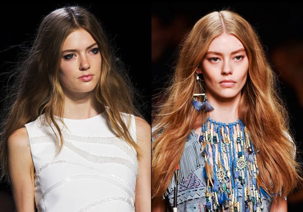 Четкие кукольные кудри больше не в моде, в этом сезоне они превратились в небрежные волны, будто растрепанные ветром. Дополненная начесом на макушке, такая прическа является воплощением хиппи-шика 70-х. Небрежные кудри идеально подходят для летнего образа, составляя отличный дуэт со струящимися тканями, кружевом, тропическими принтами.