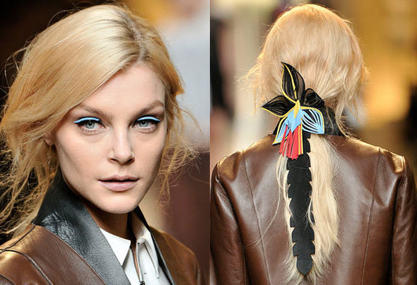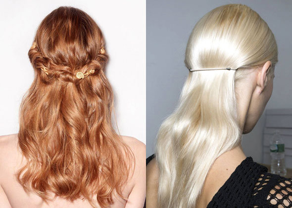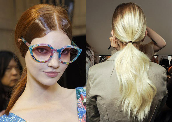 Стиль фэнтези в прическах был замечен на нескольких шоу. Например, на показе Christian Dior Haute Couture стилист Гвидо Палау придумал навесные искусственные хвосты, которые крепились с помощью 1-2 колец к основным волосам. Конечно, эта идея не подойдет для повседневной жизни, но для похода на вечеринку стоит рассмотреть такой вариант. Более приземленные, но все равно в стилистике фэнтези, хвосты предложили Barbara Casasola и Cushnie et Ochs. Эти прически состоят из двух уровней, которые отделяются друг от друга с помощью резинок. Такие интересные варианты хвостов можно рассмотреть и для офиса, и для вечернего выхода.