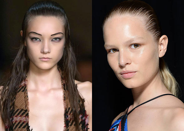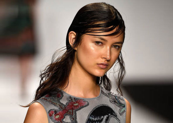 Укладки с эффектом мокрых волос актуальны уже несколько сезонов подряд. Правда, в этом году стилисты решили отойти от образа леди-денди, выбрав тематику женственности. Для этого влажные пряди завивали в мелкие кудри, собирали в интересные композиции и украшали с помощью аксессуаров.