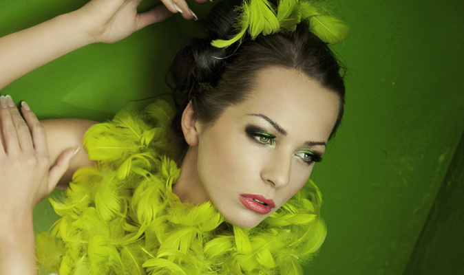 Для нее подходит макияж в чистых и радостных тонах, солнечных и нежных. Особенность этого макияжа – в соединении ярких перламутровых теней. На веках могут соседствовать цвета лимонный, лиловый, розовый и яркая бирюза.