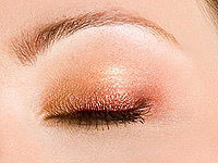 Тонко и легко покрываем все веко золотистыми тенями – они роскошно подчеркнут глубокие ореховые глаза. На подвижную часть века наносим бронзовый цвет. Бронзовые тени могут превратиться в подводку, если их нанести на ресничный край мокрым способом – тонкой влажной кисточкой.