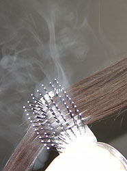 Поврежденные волосы заряжены отрицательно, поэтому положительно заряженные ионы - катионы - согласно всем законам физики, превращаясь в дымку, проникают вглубь волоса, а не уходят в атмосферу.