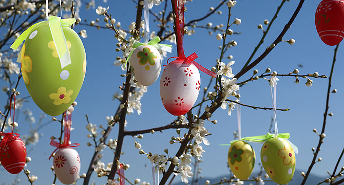 В Швейцарии украшают родники – вокруг рек и ручьев развешивают на деревьях пасхальные яйца и разноцветные ленты. Издалека эти деревца напоминают новогодние елки с обильно развешенными игрушками.
