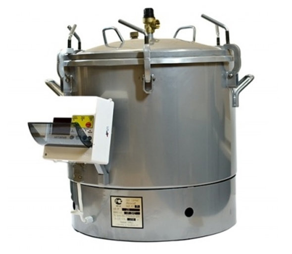Для стерилизации банок существует теперь специальный аппарат. Достаточно налить холодную воду, опустить заготовки в бак и выставить нужную температуру. Этот прибор уничтожает микробы и бактерии жаром меньше 100 градусов, так что полезные свойства продуктов сохраняются лучше, чем при обычном кипячении.