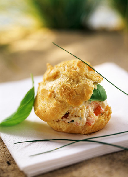 Заварное тесто выпекают при более высокой температуре, чем другие виды теста. Но если она слишком высокая, тесто сначала вздуется, а затем опадет, прежде чем будет готово. При слишком низкой температуре тесто не поднимется как следует. Идеальная температура для выпекания - 220-230° С. Тесто при вьпекании поднимется выше, если вы нальете немного воды на дно духовки сразу перед тем, как поставить противень в духовку. В течение первых 10 минут нельзя открывать дверцу духовки.