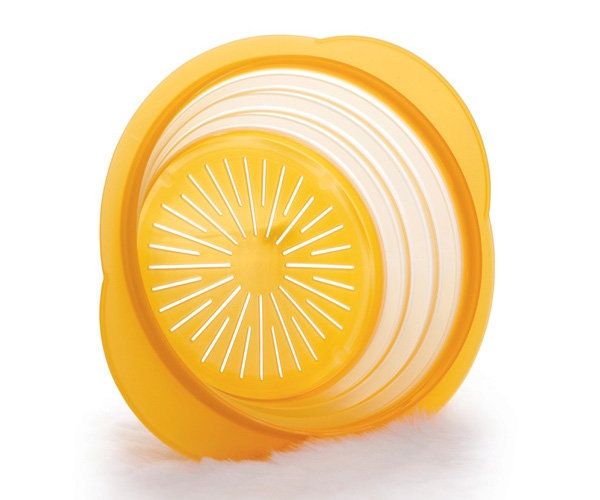 Дуршлаг-трансформер объемом 1,5 л. Сделан из двух различных материалов. Первый обеспечивает статичное, прочное основание и жесткий ободок, а мягкий полимер позволяет складывать контейнер. На основании дуршлага есть небольшие ножки, а за широкие эргономичные ручки его легко переносить. В сложенном виде он займет всего 3 см в высоту.