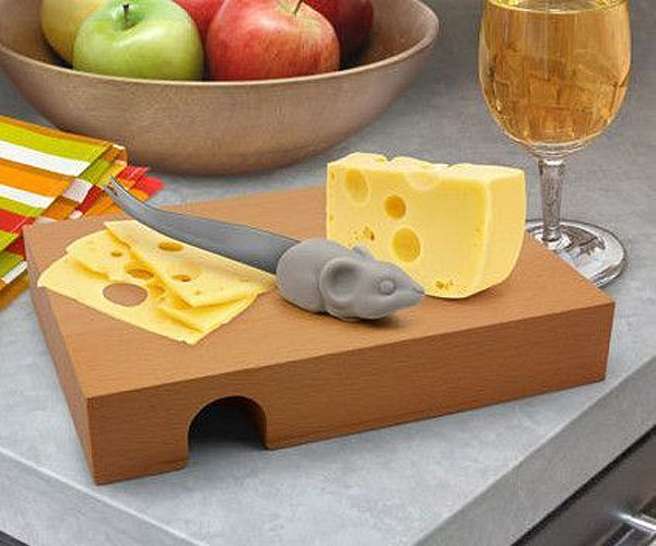 Чудо-набор: деревянная доска с норкой, куда удобно прячется мышка-ножик. Этот стильный кухонный аксессуар вызовет улыбку и удивление ваших гостей. Теперь вам нужно только купить побольше своего любимого сыра, потому что на этой доске его хочется резать и резать, а потом есть и есть. Кстати, в качестве подарка такая вещь будет действительно необычна и мила.