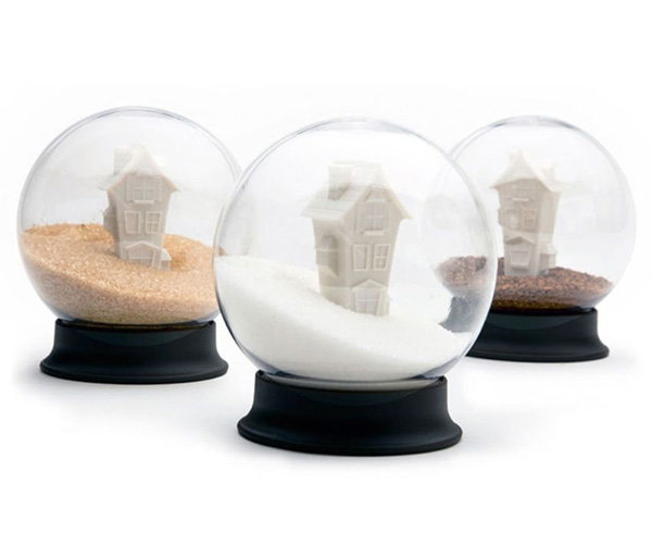 Не сахарница, а сказка! В буквальном смысле — с помощью оригинального дизайна она выглядит как снежный шар. В крышку встроен домик. Насыпьте в нее сахар, закройте крышкой и переверните — вот он, ваш собственный сказочный замок, как будто засыпанный снегом. Чтобы достать сахар, не потребуется много усилий — шар отлично стоит вверх тормашками и не падает. При желании можно создать другой «ландшафт» — из коричневого сахара, кофе или чая!