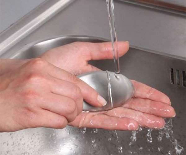 Внешне может показаться, что металлическое мыло полностью состоит из нержавейки, но это не совсем так. Внутри пустота, но соединительных швов нет, они тщательно отполированы. При использовании металлического мыла руки не царапаются. На ощупь оно очень гладкое и действительно удаляет самые стойкие запахи — от мяса, лука, чеснока, рыбы.