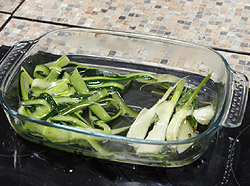 | | | | | | | | | | Обжарить томаты (без кожицы) и цуккини. Для того чтобы уменьшить расход масла (ведь мы сегодня говорим о здоровой пище), овощи рекомендуется обмакивать в масле (а не лить его на сковороду). После обжарки их выкладывают на салфетку для удаления масла. | | |