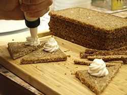 | | | | | | | | Выдавить сыр в форме розы на тост через кондитерский мешок. | | |