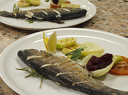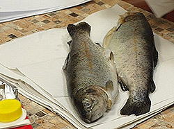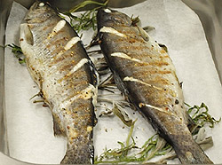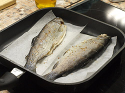 | | | | | | Для придания форели красивого внешнего вида «как на гриле» мы делаем косые надрезы. | | |