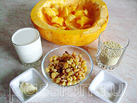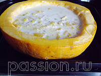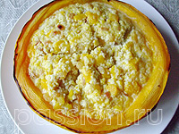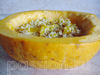 | | | | | | В тыкву положить пшено, изюм, отварную тыкву, сахар. Все посолить и перемешать. | | |