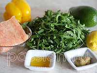 | | | | | | | | Соединить перец с авокадо и сёмгой. Перемешать. Из лимона выжать сок. Венчиком взбить горчицу, мёд и лимонный сок. | | |