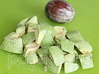 | | | | | | Одно мягкое авокадо очистить. Удалить косточку, разрезав плод пополам. Мякоть нарезать кусочками. | | |