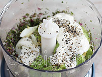 | | | | | | | | К луку и зелени добавить сваренное вкрутую яйцо (половину желтка оставить для украшения), мякоть авокадо, сметану, сок лимона. Приправить всё солью и перцем. Взбить блендером. | | |