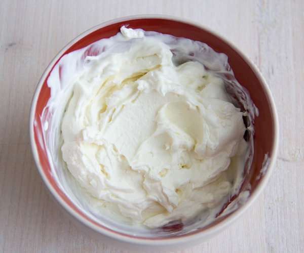 Творожный сыр смешайте со сметаной до получения нежной однородной массы.
