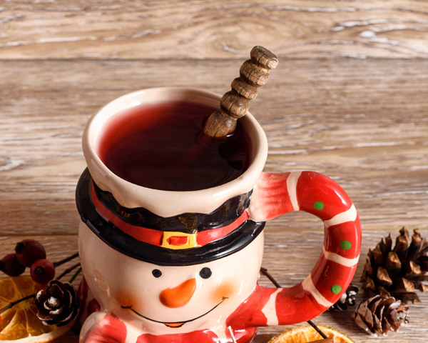 В горячий чай влить красное вино, шерри, добавить сок и цедру лимона, сахар и нагревать на медленном огне, пока сахар не растворится. Дать постоять три-пять минут, добавить остальные ингредиенты, размешать, перелить в керамическую кружку.
