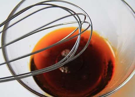 Соединить в миске бальзамический уксус, масло и сок половины лимона. Тщательно взбить венчиком, чтобы получился достаточно густой соус.