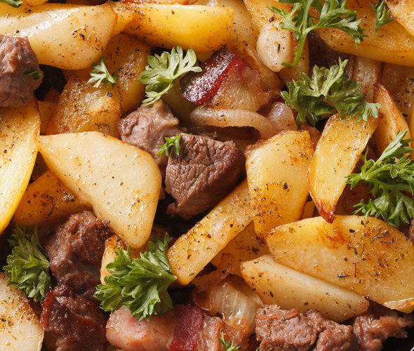 Картошку почистите, нарежьте на некрупные кубики, мясо и морковь — тоже. Лук нашинкуйте тонкими полукольцами. Все ингредиенты выложите в рукав для запекания, добавьте соль, перец, приправы и отправляйте в духовку с температурой около 200 градусов примерно на час. Ваша миссия выполнена, осталось дождаться завершающего звука таймера и разложить блюдо по тарелкам.