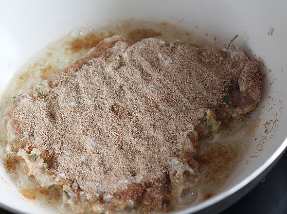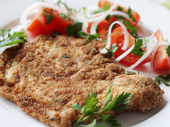 На сковороду налейте немного растительного масла для жарки, жарьте шницели с двух сторон в течение пяти минут.