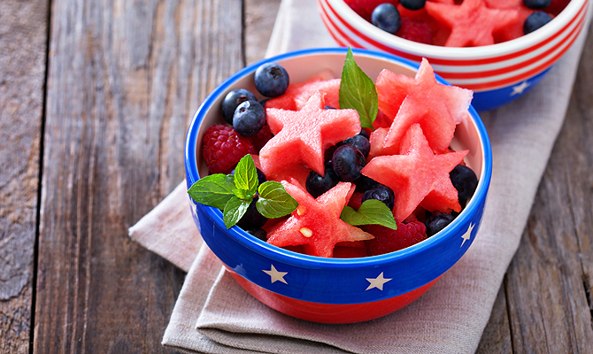 С помощью выемки сделать медальоны из мякоти арбуза. Если нет подходящей формы, то можно нарезать арбуз прямоугольниками прмерно 2х5 см.