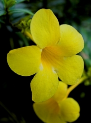 Алламанду относят к семейству кутровых. Родина - тропическая Америка. Красивая лиана с блестящими листьями и крупными цветками от 5 до 10 см в диаметре. Цветет в течение всего лета.