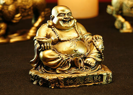 Толстопузый, улыбающийся монах с поднятыми вверх руками – один из богов благополучия, веселья и счастья. Он также может быть выполнен из разных материалов – камня, глины, пластика, однако особо ценятся фигурки, изготовленные из черного дерева.