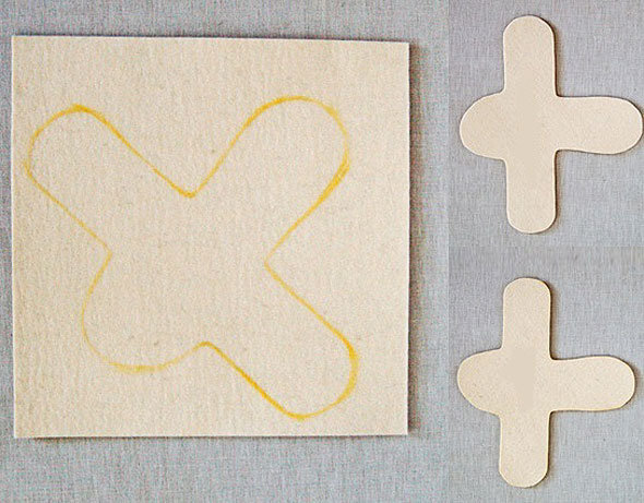 - Приложите выкройку к войлоку, обведите ее мелом и вырежьте симметричные детали.