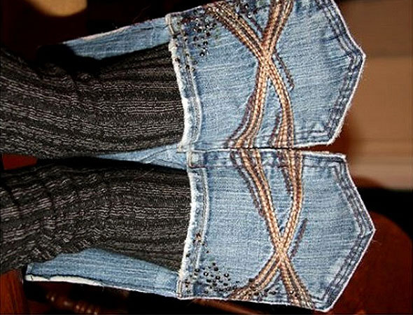 Домашняя обувь из старого свитера, верхняя часть тапочек сделана из отрезанных рукавов.