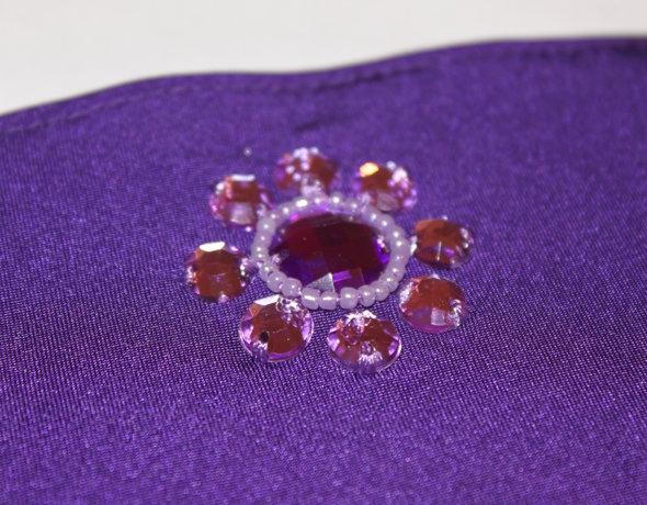 Пришейте восемь страз поменьше, на некотором расстоянии друг от друга, как лепестки цветка.