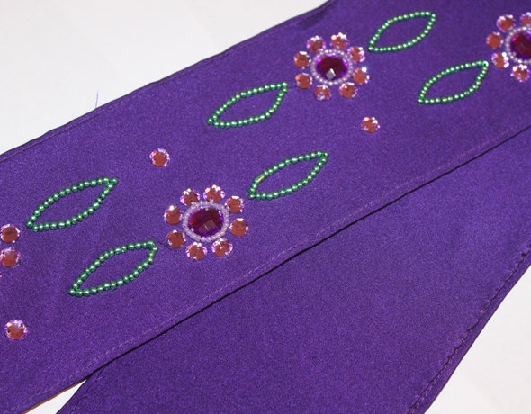 Если вышить пояс для вас сложно, можно просто украсить его разноцветными стразами. Стразы можно расположить хаотично или выложить рисунок. В продаже можно найти уже готовые рисунки, которые переводятся на ткань при помощи утюга.