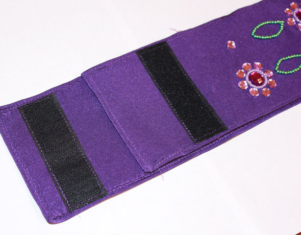 Примерьте пояс, определите расположение застежки, сделайте пометки мелом. Пришейте полоски-липучки. Также можно пришить крючки или кнопки.