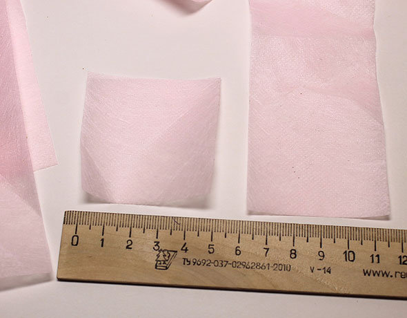 Из цветного флизелина или другого материала вырезаем квадраты со стороной 5-6 см.