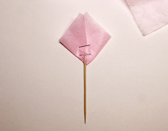 Закрепляем ромб при помощи степлера или скотча, как вам удобнее. Через верх протыкаем зубочистками.