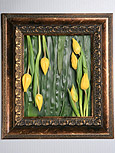 | | | | | | У нас получается зелёная основа из листьев аспидистры, которую мы вставляем в багет. Затем на эту основу мы наклеиваем стебли тюльпанов. Для того чтобы цветы стояли дольше, можно поместить стебли тюльпанов в специальные прозрачные капсулы с водой. | | |