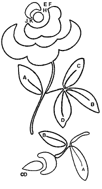 Вышивка: Предложенный мотив увеличить на ксероксе до желаемых размеров, положить под ткань и обвести контуры карандашом. Объемными нитями вышить жилку листочка и, оставляя конец 5 см, протянуть его наизнанку, закрепив несколькими стежками. Чередуя объемные нити с нитками для вышивания, вышить мотив. Концы нитей также протягивать наизнанку, закрепляя их. На петлях вышить по три больших креста простым швом в петлю.