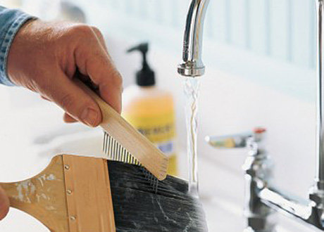 Кисть промойте под проточной водой, прочесывая щетинки расческой с металлическими зубьями. Затем заверните кисть в бумагу и хорошо просушите.