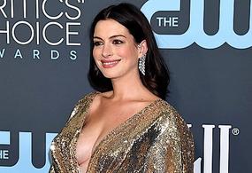Дважды мама Энн Хэтэуэй в «металлическом» платье с декольте произвела фурор