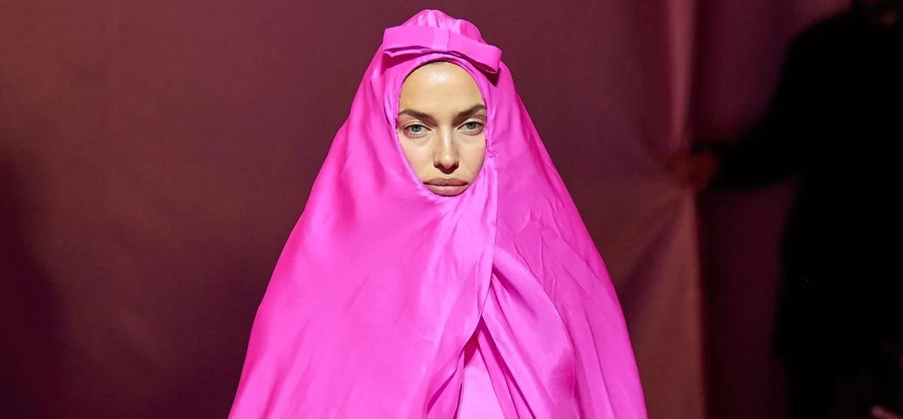 Ирина Шейк вышла на подиум в гигантском розовом «коконе»