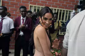 Меган Маркл в костюме с открытыми плечами посетила вечеринку без принца Гарри