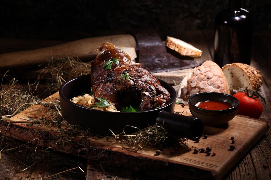 свиная рулька с тушеной капустой — сытное блюдо для настоящих защитников
