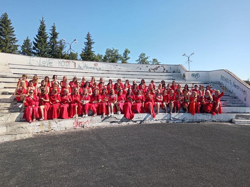 Каждая участница готовится заранее – ищет красное платье, составляет свой уникальный образ, чтобы быть яркой на мероприятии. Например, одна из них придумала интересное платье с рисунком собора. Это наша постоянная участница из Череповца – многодетная мама Елена Назимова, у нее 18 детей от 9 до 23 лет.