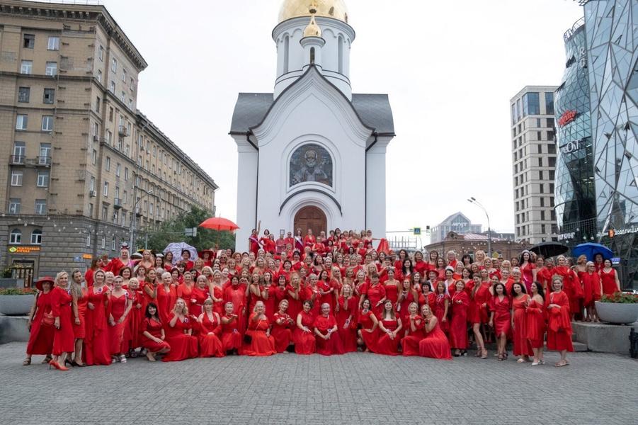 «Проект в красных платьях» в Москве, 2024 год. Организатор Юлия Кибардина и 180 участниц