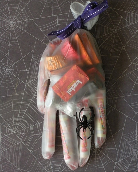 Подарки на Хэллоуин дарить не принято, но наверняка к вам домой заявятся приятели ребенка или соседские детишки с угрозами. Если вы откупитесь от них конфетами, упакованными в хирургическую перчатку, заслужите репутацию самой крутой мамы во всем микрорайоне. Потому что «отрубленная рука» — это, с точки зрения десятилеток, самый шик.